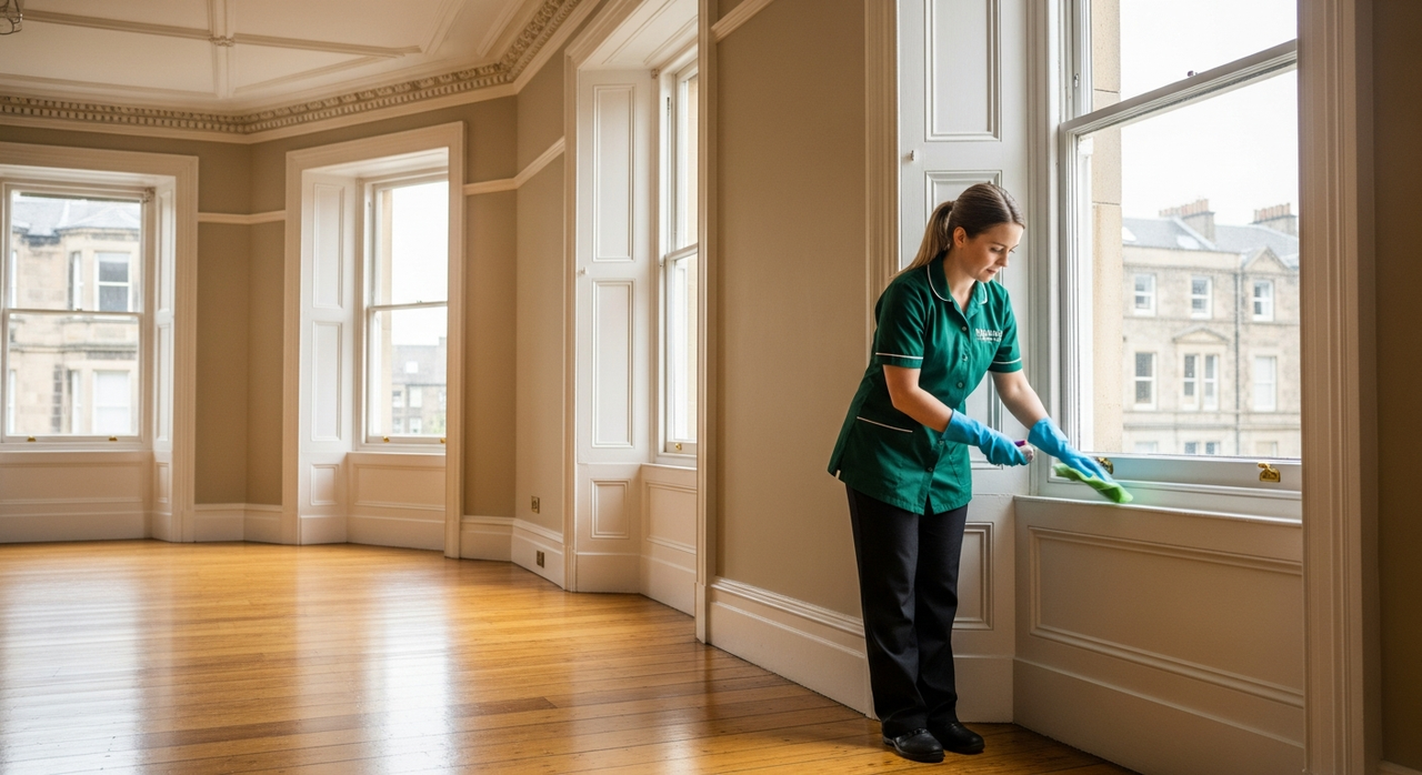 What that phrase means in practice is determined by the inventory clerk or agent conducting the check-out. A clean from a vetted professional, documented with timestamped evidence, is the standard approach that satisfies that requirement. A tenant's DIY clean, regardless of effort, rarely passes a rigorous check-out inspection in Edinburgh's older rental stock.